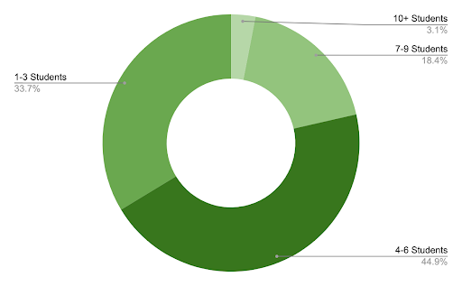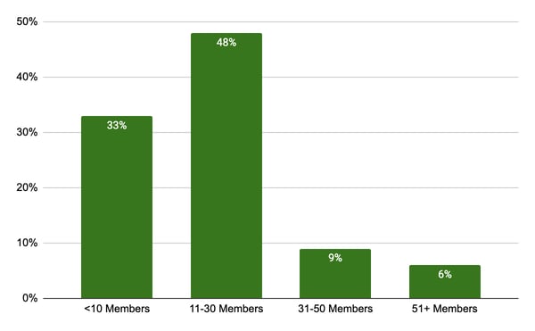 Ensuring participants take sufficient ownership of an entrepreneurial club takes student initiative and leadership - but how many is the right number of volunteers? The Fall 2019 survey found 44% of clubs had 4-6+ student leaders, ⅓ of respondents had 1-3 students, and 18% had 7-9 student leaders. - Active Club Members