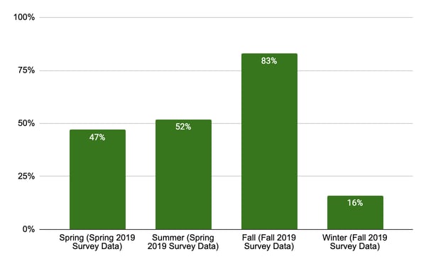A summary of six questions and answers from the Fall and Spring 2019 surveys follows.